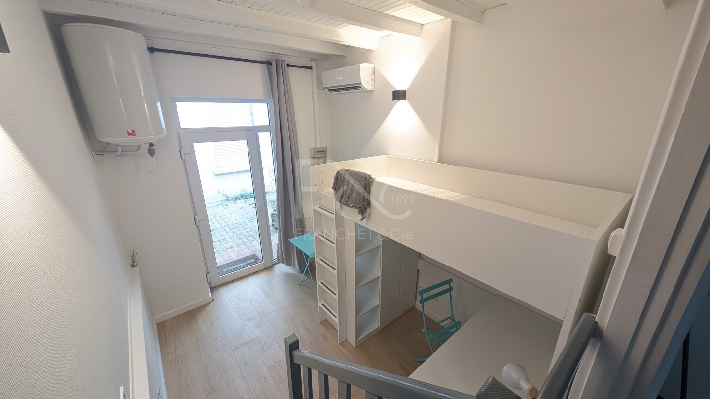 Il se compose d'une pièce principale avec lit mezzanine, coin bureau, cuisine équipée et salle d'eau avec wc.